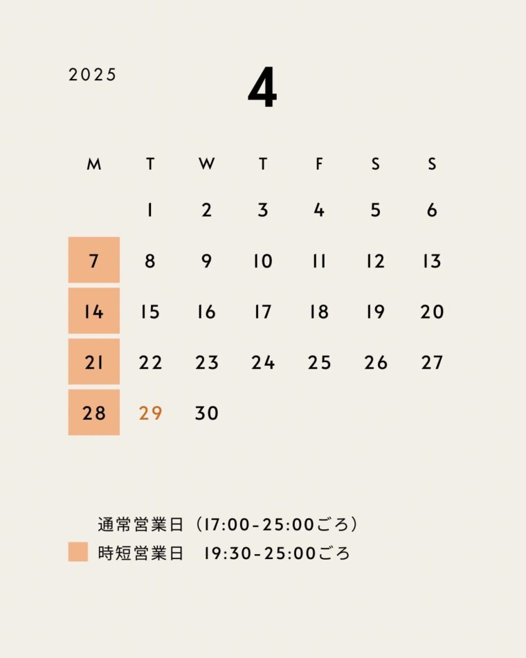 2025年4月営業のお知らせ 2025年4月1日 Last updated : 2025年3月29日 hug 北参道hugです🌸 今月もよろしくお願いします! 月末から始まるGWも通常営業の予定です。 よろしくお願いいたします。