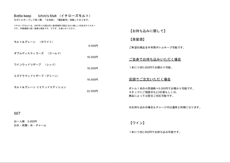 *ボトル¥9000円〜(セット代¥3000/1人)*